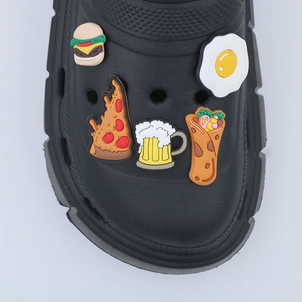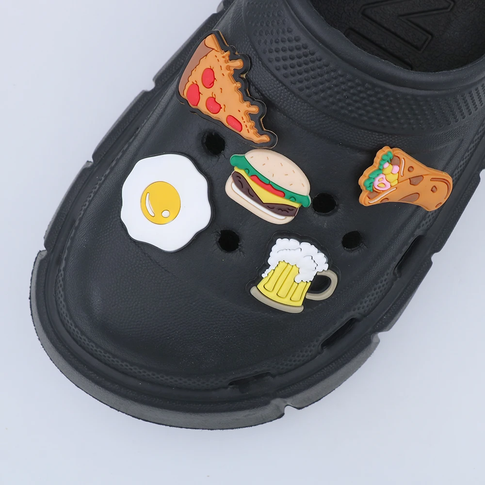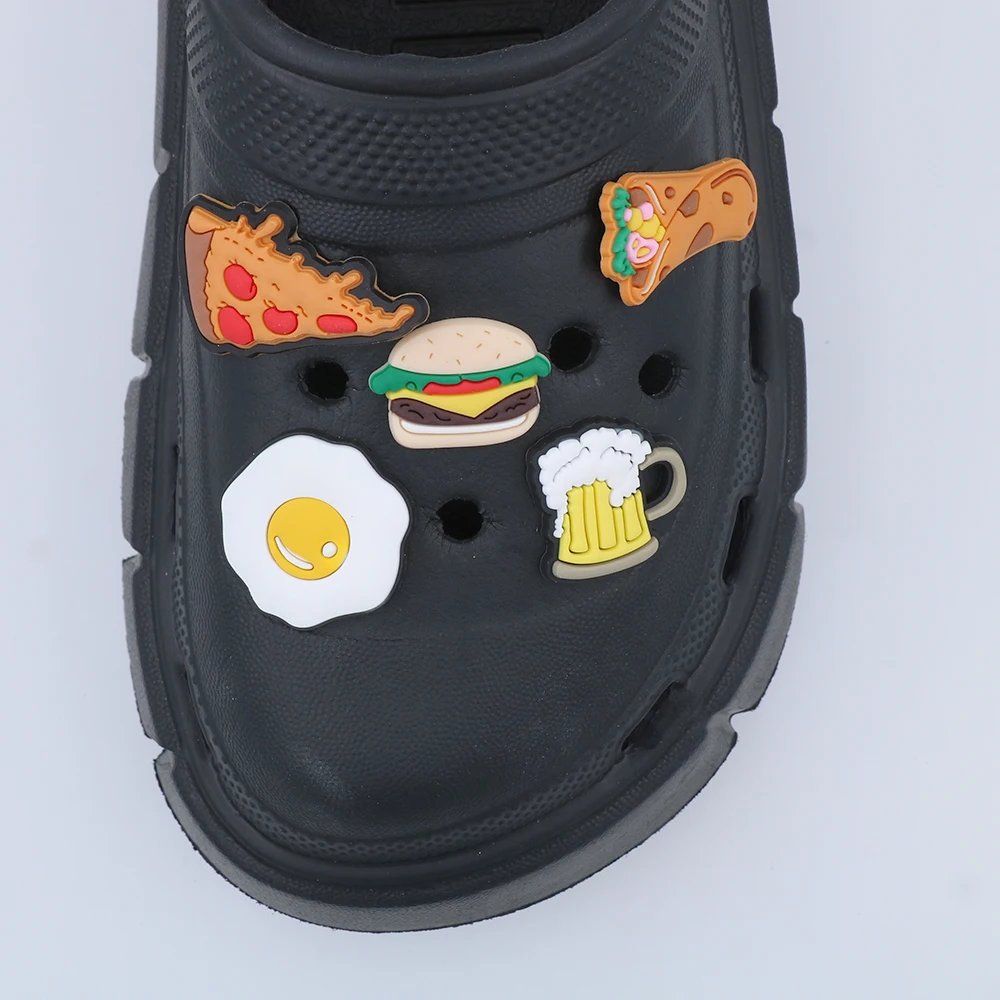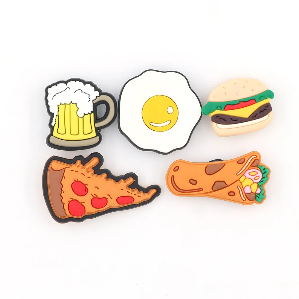 Shoe Decorations Charms Pizza Cartoon Fried Egg Shoe Accessories Charms Hamburger Beer Ornament Children’s Holiday Gift 1 Pc